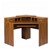 OS Home and Office Furniture Corner Desk with Monitor Platform. Raised monitor platform Two cubby holes and two convenient drawers Adjustable pull out keyboard shelf with ball bearing guides One inch thick work surface with rounded people friendly edge Nickel finished metal drawer pulls Item is in clean factory carton! Retail $242.20 |