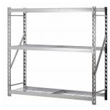 Muscle Rack TP722472W3 3-Shelf Steel Treadplate Welded Rack, Length: 24", Height: 72", Width: 77", Silver. 2000 lbs per shelf capacity 3-wire shelves provide ample storage Heavy duty steel construction for durability Shelves adjust in 3" increments to fit any storage needs Tread plate embossed beam design Item is in factory carton! Retail $125.76 |