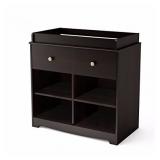South Shore Little Teddy's Changing Table, Espresso. Features 4 open easy access open storage and a particle drawer equipped with metal slide A Pure White version with crystal knobs also available Changing pad and accessories not included Weight of the child should not exceed 30 pounds Complete assembly required by 2 adults; Tools are not included; Item is in factory carton! Retail $139.00 |