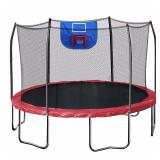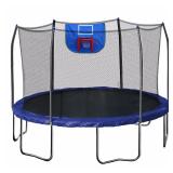 Skywalker Trampolines 12-Feet Jump N' Dunk Trampoline with Safety Enclosure and Basketball Hoop. Reinforced t-bracket construction provides greater structural stability at each enclosure and trampoline joint Patented no-gap enclosure System attaches net to jump mat at each spring, eliminating gaps Tightly woven polyethylene enclosure net for excellent durability and UV protection Woven jump mat made of heavy-duty UV protected polypropylene to prevent slipping Meets or exceeds ASTM safety standards Safe play basketball hoop and ball made of soft materials Basketball hoop features break away Velcro rim to ensure minimum impact on enclosure net and poles Item is in factory carton! Retail $249.00 |