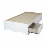 Crystal Collection Twin Storage Bed Pure White. The interior drawer dimensions are: 22.5" wide by 4.25" high by 17.75" Front to back. They are equipped with safe and quiet plastic slides. Pair it with the rest of the Crystal collection for a perfect princess set! The drawers are decorated with beautiful crystal knobs that will please any girls. Complete assembly required by 2 adults with minimal skills, tools not included. Mattress and accessories are not included. Item is in factory carton! Retail $148.48 |