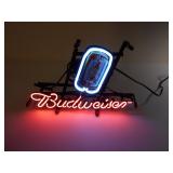 Budweiser neon bar sign. 13" X 8"X 3". Can be set on the counter or hung on the wall. Previously used. Very good condition. |