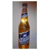 3D Budweiser Cold Filtered Ice Draft light beer bar sign. 33" Tall X 8" Wide X 4" Deep. Comes ready to hang on wall or stand on counter. This sign is in the shape of half a beer bottle. |