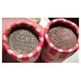Lot of two unsearched rolls of wheat pennies. Circulated condition. |