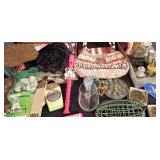 Fiesta, Fiesta, Fiesta !!! 1000's pieces of Jewelry (NO GOLD) Lots of VINTAGE jewelry Tons of brooches 30+ watches (Including Fossil) Broncho Padgitt ~ Dallas handcrafted leather purse from circa 1900 Pocket Watches Records (including Elvis, Beatles, etc..) Cast Iron Kitchen Aid Stand mixer Designer Home Furniture Broyhill Bedroom Furniture Apothecary bottles Misc chairs & rockers Coffee and end tables Lyre /Harp tables with marble tops Art Glass Murano Wii Sports Vintage Classic Wizard of OZ Books (4) Books Vintage Hazel Atlas Carousel drink Shaker Fiesta Flatware VINTGE PYREX MIXING BOWLS (Primary colors) Beautiful Lenox Montclair China set Luggage Designer clothing & purses Gas Grill Lot of old Bottles & Rustic "littles" Stunning Silver Plated Punch bowl, ladel & cups Shabby Chic/ Country dining room table 55 Inch Vizio Flat Screen TV DVD's Wall Mirrors Fishing Lures Entire room full of games, puzzles, and toys Disney collectibles Handswen quilt Honeywell Air Purifiers Nice Pottery barn White Childs bedroom suit Office Desk Vintage Tupperware Beautiful bedroom furniture Mantle Clocks Beautiful Home decor Cookbooks American Fostoria Crystal decanturs Huge set of Community Flatware (Beautiful!) *Is anybody still reading this? :) Perfume Perfume bottles 2 Salad Master pots Calphalon Lamps La Z Boy Living Room Furniture Small Appliances Front loading Kenmore washer & dryer Christmas Garage items, plus lots more being uncovered each day as we continue to prep, so keep checking back often...