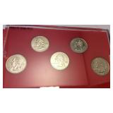 Sunday January 15th Online Auction 3 Amethyst and topaz 14k rose gold over 925 Sterling earrings 20 14k gold yellow gold heart shape earrings with pearl accent 72 Diamond Accent Gold over Sterling Silver 7.25 inch Bracelet 73 Diamond Accent Sterling Silver Snowflake Pendant on 18 inch Chain 75 Diamond Accent Sterling Silver With 10K Accents Ring Size 10.5 79 Diamond Accent Gold over Sterling Silver Circle Pendant on 18 inch Chain 80 (2) Picasso Tiffany & Co Interlocking Circle Sterling Silver Charms 109 165 185 25 900 silver Roosevelt dimes 1960(3) '61(2) '62(5) '63(2) '64(13) 187 Eight Kennedy half dollars $4 face value 1971(3) '72(1) '74(4) 201 Walking liberty half dollars $10 face value 900 silver 1945 one with no date |