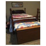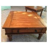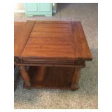 Bassett round end table, square 2 drawer coffee table, one drawer end table