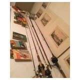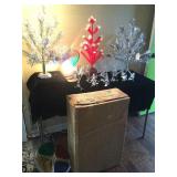 3 vintage aluminum Pom Pom Christmas trees, one is 7', 2 light wheels, other Christmas trees,