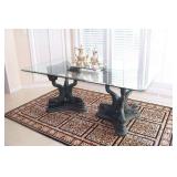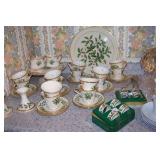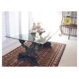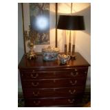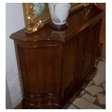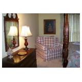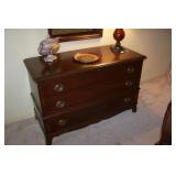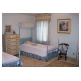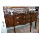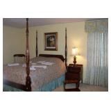 Furniture: Dining room table; set of 8 Victorian dining chairs; mahogany china cabinet by Henkel Harris; banded Hepplewhite card table by Henkel Harris; beautiful Hepplewhite sideboard by Henkel Harris; corner china cabinet; living room sofa; mahogany 4 drawer chest (Henkel Harris); very nice curved glass china cabinet; very nice bookcase secretary (small); Victorian chair and matching stool; Sheraton love seat; early tilt table; set of 4 French provincial chairs; set of 4 Victorian chairs with needlepoint seats; small mahogany bench/loveseat; English lowboy; mahogany lamp table; den sofa; sectional sofa; coffee table; French chair; pair of early painted lift top rice or seed bins (stamped York, PA on the back); Indonesia stool; solid plank coffee table with twisted wooden base; bamboo and rattan desk on stand; glass top table; combination iron console/bakers rack with marble top; pair of iron plant stands; pair of Hitchcock chairs; two sets of bar stools (one 4 piece set of chrome and set of 6 bamboo with upholstered seats); beautiful mahogany 4 post queen size rice bed; mahogany lift top blanket chest; two early mahogany potty chairs/seats; Hitchcock rocking chair; mahogany end tables; mahogany bed steps; overstuffed chair; small mahogany desk; Pr. painted twin bed- French Provincial style with short canopy; French provincial chest; painted dressing table with chair; French chairs (3); queen bedroom set including bed, dresser, armoire, side table; wing chair; miscellaneous small pieces of furniture. China, Crystal, Silver: Several sets of crystal including cranberry; Lenox "Holiday" china; set of antique German china; set of Wedgwood "Tropical Garden" china; collector plates; silverplate; sterling including miscellaneous bowls, platters, Rose Point flatware, sterling goblets, 3 piece sterling tea service; much more. Decorative Accessories: Several antique oriental rugs (runners (2), large antique Chinese rug; pair of candelebra with prisms; pair of wall candle sconces; pair of torchere wall lights; iron chandelier; pair of outstanding iron lamps; pair of iron floor lamps; beautiful lamps; prints; paintings; large amount of good books; cut glass; Delft; oriental porcelains; mirrors; Italian pottery; lots more. Household Items: The usual kitchen items including cookware, corning, pyrex, etc; decorative pillows; drapes and matching valances; large amount of costume jewelry; real jewelry; beautiful table linens; "Alabama" memorabilia including books, etc.; records; tools; office desk and accessories; stereo and camera items; a large amount of miscellaneous bric brac. |