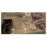 Signed/numbered David Smith waterfowl/stamp print, varied and interesting artwork-prints, oils, charcoal, nice chocolate micro-fiber camelback sofa, fabric, Christmas decor, office supplies, small box of jewelry, frames, 4 drawer file drawer credenza, nice book cases, storage units, sewing patterns, beautiful bath/bed/kitchen linens, floor mats, area rugs, tall jewelry storage cabinet, decorative pillows, Sony Blu-Ray player, Sony Home Theater system, Vizio sub-woofer for sound bar, Garmin and Magellan mapping units, Frontgate furniture covers, end, coffee, accent tables, lamps, kimono style robes, very nice men’s and ladies, clothing, sweaters, coats, shoes, purses, framed golfing prints, paper shredder, upholstered benches, small metal/crystal chandelier, California Closets storage unit, V-Tech phones, Asian figurines, faux bonsai, Sony Dream Machine,(Z-z-z-z-z-z-z-z-z-z……), Apple wireless keyboard,(my Son gave me one, and I LOVE it !), HP printer/scanner, Black & Decker iron, Hot Point dryer, Samsung VRT heavy duty washer,(stainless tub), crocheted/embroidered items, rolling file holder, glass and metal computer desks, really comfy rolling office chair, nice TV/media credenzas, ice blue upholstered fainting style couch, gorgeous comforter sets, Tri-Star cleaning system, Grandin Road EZ bed, Ricardo rolling carry-on, cosmetic items, selection of nice men’s ties, afghans and throws, boxes of CDs, DVD,s, VCR tapes, antique and current books, Dresden figurines,(looks like one of them stuck her fingers in a fan-oops), beautiful contemporary style dining table, w/6 chairs, 2 leaves, Better By Design “leafy” upholstered chairs and ottoman, like new Bassett tan sofa and love seat, “kimono” Austin sculpture, Vizio 55” flat screen TV, lawn/poolside items, cast metal patio table, chairs, umbrella, double Rubbermaid storage unit, large aluminum furniture frame, patio accent tables, beautiful Lenox and etched wine balloon wine stems, glass wine funnel, wine openers, vintage Native American pottery, tea pots, rotary cutting mats, candles, Fitz & Floyd basket, Asian writing sets, vintage German daschund figurine, Lenox hummingbird stoneware, cobalt creamer, sterling and silver-plate items, miniature Asian brass screen, large glass decanters, “asparagus” and “cabbage” vegetable servers, etched cat in a crystal ball, stoneware containers, Venetian glass perfume bottles, cracker/olive server, made of cow horn, paperweights-latticino, millefiori, bubble, old world globe book ends, tea maker, Delonghi deep fryer, Waring Pro Belgian waffler, Calphalon, cast iron, Commercial cook ware pieces, bakeware, Russell Hobbs water kettle, GE coffee mill, boxes of flatware, kitchen utensils, electric skillet, collection of pale amber depression glassware, Cuisinart coffee maker, and much more.