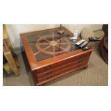 * awesome coffee table with ships wheel inside) perfect beach decor