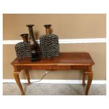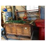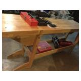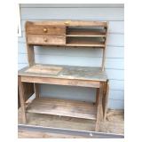 Deck or patio: Wood bench glider Wood potting table Two wood benches