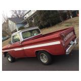 1965 Chevrolet red C-10 truck-305 cu. in. Engine,4 speed