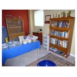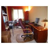 Leather reclining sofa Leather recliner chair Contemporary office desk and chair Book cases Coffee and end tables Large trunk Decorative round wall mirror with swan motif Vintage china cabinet Flat screen TV and TV stand Torchiere lamps and other lamps Lawyer bookcase, file cabinet Computers, scanners , computer accessories, phones Books, CDs, DVDs, VCR tapes Linens Kitchen: dishes, stemware, flatware, etc. Clothing Art/craft supplies, art table, decorative items IQ Air Particle Scan Lite Kit And more! |