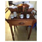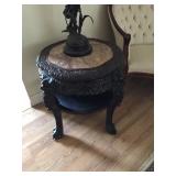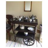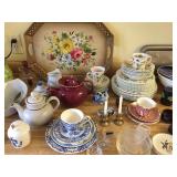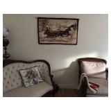 Large Selection of Textiles and Weaving Supplies, Beautiful Handmade Quilts, Hand painted Limoge China, Cut Crystal, Sterling, Lamps, Cane Back Sofa and Chair, Linens, 7'x 11.5' Tabriz Oriental Rug, Chinese Marble Top Table, Oil Paintings, Teacart, Mid-Century Danish Dining Rm Set, Standing Silver Chest, South American Carvings, Antique Jewelry, Stickley Dresser and Bed, Advertising Pieces, Arts and Crafts Cedar Chest, Slant Front Desk, Martha Washington Stand, Large Walnut Glass Cabinet, Kitchen Items, Large Macomber Ad-A- Harness Loom, Spinning Wheels, Yarn Winders, Spool of Beautiful Yarns and Dyes, many Vintage weaving Patterns and supplies, stamp collection, books, outdoor wooden swing, tools and much more. |