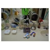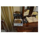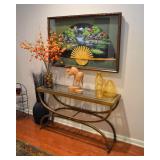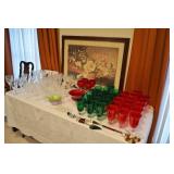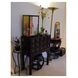 Foyer Tables, Asian Art, Floral Arrangements, Blown Glass Vases, Pr. Wood Cranes, Rugs, Mirrors, Mud Men Figurines, Floor Lamps, Asian Style Apothecary Cabinet, Plant Stands, Lacquered and Bamboo Stools, Asian Dolls (including Ichimatsu), Wonderful Contemporary Asian Dining Room Suite made by Universal Furniture of High Point, NC (including Table w/6 Chairs, China Cabinet, Sideboard), Glass Front Buffet, Lots of China and Crystal (including Lenox, Waterford, Tiffin, Handpainted, Mikasa, Royal Gallery, Collection of White China, Nikko, Denby), Mahogany Flatware Cabinet, Set Dansk "Rondure" Flatware, Silverplate, Nice Serving Pieces, Punch Sets, Embroidered Asian Art, Asian Chest, Model Ship, Living Room Furniture (including Sofa, Pr. Wing Back Chairs, Pr. Queen Anne Side Table, Queen Anne Coffee Table, Asian Screen, Camel Saddle, Drum Table, Candle Tables, Like New Recliner, Contemporary TV Stand, Nice Lamps Throughout the Home, Off White Occassional Table, Asian Horseshoe Chair, Modern Woven Magazine Table, Contemporary Lamp Table), Panama Canal Zone Year Book, Pottery and Ceramics (including Roseville, Asian), Lighted Curio, Office Furniture, Printer, Paper Shredder, CD Cabinets, Heaters, Decorative Baskets, CD's and DVD's, Lots of Yarn, BB Gun, Stereo, Bedroom Furniture (including Contemporary Asian by Vaughan, Bed, Dresser w/Mirror, Armoire, Pr. Night Stand, Cedar Lined Trunk), Pr. Folding Screens, Folding Bookcases, Pr. Caned Club Chairs, Ladies Clothing (mostly like new from Chico's, Formal Wear, Vintage Sweaters, Gloves, Purses, Boots, Shoes, Scarves), Nice Linens (including Sheets, Towels, Tablecloths, Napkins, Placemats), Vanity Items (including Makeup Mirrors, Brushes, Perfumes), Vanity Stool, Clocks, Whirlpool Cabrio Washer and Dryer, Rowenta Iron, Breadmaker, Towel Rack, Fine Mid Century Dresser w/Mirror, W/Matching Gentlemen's Chest and Night Stand, Victorian Sewing Rocker w/Footstool, Bookcases, Art (including Originals and Prints), Console Cabinet, Holiday Items (including Easter, Christmas, Thanksgiving, Halloween, Lots of Anna Lee Figurines), Card Tables, Luggage, Shelving and Plastic Totes, Fridgidare Fridge, Kenmore Freezer, Patio Tea Cart, Hand Trucks, Footstool, Lawn and Garden Tools, Wrought Iron 3 Pc. Bistro Set, 5 Pc Wrought Iron Patio Set, Wrought Iron Patio Tables, and Chaise, Planters and Chimes, Set Lenox Holiday Flatware, Small Appliances, Stainless Steel Flatware, Bakeware, Cookware, Wood/Wrought Iron Dining Table w/6 Chairs, Flat Screen TV, Pr. Bar Stools, Kitchen Gadgets, Dessert and Cake Plates (some w/Domes), Pots and Pans, Jewelry/Showcase (including Collection of Chico's Necklaces, Weiss, Peace and Morgan Silver Dollars, Panama Balboa Silver Dollar, Other Vintage Costume Jewelry, Givenchy Necklace, Last Supper Coin, Sterling Silver Flatware, Charm Bracelets, Siam Sterling Jewelry, Egyptian Sterling Pendant, 10K Gold (Football Charm, Ring), 14K Gold (Diamond and Sapphire Ring, Rope Chain w/Llberty Coin, Hoop Earrings, Gemstone Earrings, Herringbone Necklaces)).