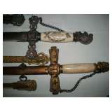 A GREAT SALE! 2 STRESSLESS STYLE CHAIRS, RED LEATHER SOFA, 2 LEATHER LA-Z-BOY RECLINERS, OAK DR TABLE & 4 CHAIRS, QUEEN BR SUITE, 4 PC. TEAK WALL UNIT, SLEEPER SOFA, OCC. CHAIRS & TABLES, EXERCYCLE, APPLIANCES, ANTIQUE CEREMONIAL SWORDS - DAGGERS & PISTOLS, MUSIC BOX COLL., FLAT TV, HP LAPTOP, OFFICE FURN., LOADED KITCHEN!! AND MUCH MORE |