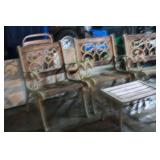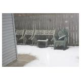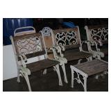 Metal Frame Park Bench with 2 Matching Chairs and Foot stools