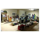 Stanley Furniture Dining table with 10 chairs Stanley Buffet with granite top Stanley serving cabinet Cookie Jar collection Bell collection Stamp collection Full Kitchen Ladies and men's clothes and formal wear Hunting and fishing items Library full of books Hat and wig collection Fainting Couch Breakfast table Queen Sleigh bed Dressers and night stands Curio cabinets Classic car models Toys and Christmas including a 9 foot tree with cover Coca Cola cooler Wood outdoor coolers Outdoor furniture Ski items and gear Playground set Beautiful house area rugs Thomas Kincaid art Moves, music, and much more |
