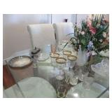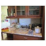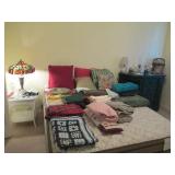 All in excellent condition and clean. Formal dining set, corner cabinet, dinette set, bakers rack, sectional sofa, sleeper sofa, entry table, recliner, rockers, 2 queen bed sets, Tempurpedic queen mattress, pictures, area rug, HD TV, lamps, book shelves, clocks, Tiffany style lamp, wicker furniture, jewelry cabinet, Farberware flatware, water fountain, patio set, linens & kitchen