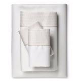 Performance Sheet Set Decorative Hem - Threshold™ Thread Count: 400 Number of Pieces: 4 Includes: 1 Flat Sheet, 1 Fitted Sheet, 2 Pillowcases Fiber Content: 100% , Cotton. Add a new dimension to your bedding ensemble with the Threshold Performance Decorative Hem Sheet Set. This opulent 400-thread-count 100% sheet set will cradle you in comfort. The repeating pattern on the hem has a delicate look, and is just bold enough to add some sophistication to your room. Machine washable for easy care, this quality sheet set is a must-have. ITEM IS IN RETAIL PACKAGING! Color/Brown Linen Size/King Please attend the preview. Retail Price: $59.99 (34) |