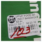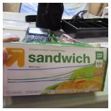 Sandwich Bags 150 ct - up & up® Double Zipper Sandwich Bags are the perfect size to use in lunches for sandwiches, chips and veggies or to use for storing small items around the house. ITEM IS IN OPEN RETAIL PACKAGING! Please attend the preview. Retail Price: $4.09 |