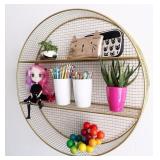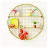 Pillowfort Circle Shelf - Dimensions: 25 inchesH x 25 inchesW x 5 inchesD * The Circle Shelf from Pillowfort works as organization and storage in virtually any child's room no matter the theme. The mesh metal frame of the circle is cut into 3 separate divisions to categorize their treasures, such as rubber balls, plastic dinosaurs and trading cards. Hang the shelf with other round objects, such as a mirror or circular picture frame. ITEM IS NOT IN ORIGINAL RETAIL PACKAGE. **ACCESSORIES NOT INCLUDED Please attend the preview. Retail Price: $29.99 |
