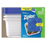 Ziploc 3 Medium Square Containers + 2 Extra Small Containers - Ziploc brand Containers make it easy to store gifts, household items and food while locking in freshness! You can hear the lid securely close with just one press. When you have a secure seal you know you are keeping food fresh, which saves you money. • Wide rim, finger grips, and a ridged lid make handling easy • Measurement lines on containers for exact portion size • Ziploc brand Containers are perfect for: 100-calorie servings*, On-the-go snacking, Packing in kids' lunches, Bringing lunch to the office. ITEM IS NEW IN RETAIL PACKAGING! Please attend the preview. Retail Price: $3.99 |
