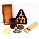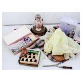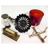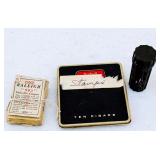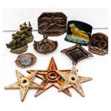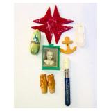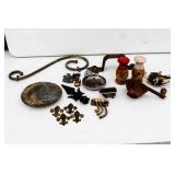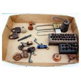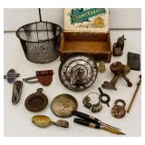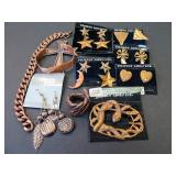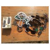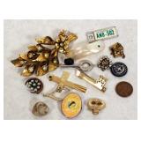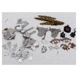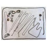 We saved the best for last. Hundreds of vintage jewelry lots, advertising pieces, pallet racks, antique furniture, Geiger counters, copper pail, electronics, oddities, rarities, whats-it calleds & everything you can imagine. 1 Auctioneer's Notes: Location The exact location of the pick up will be emailed to the winning bidders and will be printed on the bottom of the attached reciept. 2 Auctioneer's Notes: Credit Cards If the credit card you used to register has been lost, stolen, deactivated, etc. you will need to call our office the morning following the auction. I will need to manually enter the new credit card number in order to process the payment. For your sa... 3 Auctioneer's Notes: Pick Up Several people have asked if they can pick up at the end of this auction for all three auctions. Please email carrie@catesauction.com for questions. 4 2000 Mercury Villager OD Reads 46136 The van will be available for viewing at the pick up for the second auction which is 2/16/17 12:00-7:00pm Runs and drives, needs a new battery but is otherwise in good running condition. VIN: 4m2xv14t2ydj20746 Year: 2000 Make: Mercury Model: Village... 5 Native American Headdress We are still doing research on this item, look for an update. 2/1 130 Group of Bracelets All Silver toned. Includes bracelets with elephants, oval clear stones, colorful leaves, circles and squares with different colored stones, chain, chili peppers, and gold toned trim. 131 6 Native American Style Woven Bead Jewelry Longest is 18 inches long. Blue black and white beads with fringe on both ends 12 inches by 2 inches, One is multicolored with red blue and more is 18 inches long. This one has bracelet to match with leather ends and sewn-in snaps, One has blue, or... 132 16 Plastic Bangle Bracelets Golds, greens, yellow, and brown. Do not know if any are Bakelite. 133 Wooden and Plastic Bangle Bracelets 6 wooden with a little carving, and two cream plastic. 134 Vintage Pins 7 vintage pins. The smallest is a gold rope look with two real diamonds. Also includes a pink heart with stones, a gold heart with colored stones marked Trifari, a little circle with clear stones, a circle with red stones (two are loose) and two silv... 135 Group of 9 Vintage Pins Large butterfly with four missing stones, great flag pin, gold pineapple with green and clear stones, sword fish, silver bow, gold elephant with pink flowers, gold long pin with red and white enamel, and more. 136 Large Group of Pendants Puffy gold ornate heart, heart marked "Maggie", bowling pins, small silver puff heart, gold oval, Avon telephone, Special Olympics, silver wreath, Thunderbird, large gold and white leaf, and more 137 NY Worlds Fair Men's Ring Gold toned and adjustable size. The front looks white with NY World's Fair and symbol. 138 5 Bakelite Bangle Bracelets Hot water tested to be Bakelite. Beautiful colors, red, orange, yellow, and green, some narrow and some wide. 139 5 Bakelite Bangle Bracelets Hot water tested to be Bakelite. 5 narrow bracelets, butterscotch, orange, yellow, brown and more. 139 Big Group of Cute Plastic Bracelets Blue plaid with hinge, large brown cuff with 5 silver beads, light wood grain cuff, blue and clear and yellow and clear square bracelets and brown, golds, and greens. 140 5 Bakelite Bangle Bracelets Hot water tested to be Bakelite, Includes red, greens, butterscotch and brown. 141 19 Silver and White Bracelets All very narrow, some are silver some are silver and white. Two that are a little wider appear silver but are marked solid brass. 142 Silver and Gold Toned Cuff Bracelets Silver bracelet is carved with 1" flowers, silver cuff with flamingos (very thin), silver cuff with clasp and dragon, two rope style cuffs, three gold bracelets that are alike, and more. 143 Vintage Earrings and Matching Piece of Necklace Pale green flowers with clear stone in the center. No stones are missing. Necklace piece is 6 inches long. Some of the paint is peeling from the back, see photos for condition. 144 Handsome Bakelite Horse Pin Bakelite, measures 2 inches by 3 inches, with gold eyes, and gold trim. 145 18K Gold Plated Solid Brass Miniatures Approximately 20 miniatures including computers, clocks, cannons with wine, cup holder, mirror, bible and more. Some are NIP, marked, "Solid Brass" or "18K gold plated". The ones that are loose are not marked. 146 Silver Toned Pididdly Links LTD. Jewelry Two 1.5 inch puffy heart earrings on card, 2.5 inch open hearts, two open circles with flowers (missing one back), new wire necklace with black stones and silver balls, and more. Also includes a new in package pendent and earrings with turquoise colo... 147 Pididdly Links LTD and Copper Toned Jewelry 5 pair of Pididdly Links earrings on cards, all copper toned. Includes moon and star, hearts, stars, flower with pearl, triangle design, and a snake pin 3 inches by 2 inches. Also includes a wide copper chain bracelet, large copper toned heavy ring, ... 148 Group of Rosaries and Crosses Two rosaries, one red and one black. Includes a gold toned necklace with pink stones, a necklace with a wooden cross and fish, a religious pin and a very thin material gold cross. 149 Milk Glass and Glass Bead Necklaces White milk glass beads with oval stones and three little lines of clear stones marked Germany, 12 inches. White tiny beads, 14 inches. White beads with chain, 56 inches long. Glass beads, 12 inches. Another glass necklace has no hook on the end. 150 Large Group of Bracelets Silver toned black and white beads, silver toned hearts, cherubs, scotties, chains, black and white ovals, polar bears, moons, dolphins, silver and white, silver and gold, Noah's Ark marked "Yechang", and farm images. 151 Large Group of Funky 80's Necklaces White beads, cream beads, pink shell beads with round pendant, fat pink beads, pink and gray beads, and more. 152 Large Group of Beads and Twisted Beads Lots of the twisted flapper look beads including pink, shell, silver beads, green beads, and more. 