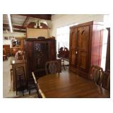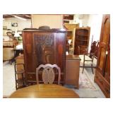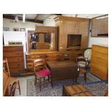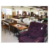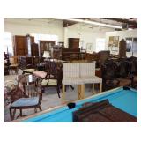Antique and Modern Furniture (7PM): Very unique antique Oak paneled phone booth, antique Oak lift top single door ice box, Vintage Red and White enamel breakfast table, Catnapper Powerlift upholstered lift chair, Consolidated Furniture Co, Inc. 8pc French Provincial dining room suite, Mahogany 5pc bedroom suite, Wurlitzer spinet model piano, antique wicker childs rocker, 6pc Virginia House Maple bedroom suite, Victorian Settee, Chimney style lighted two door curio cabinet, Mid Century Modern 3pc bedroom suite, floral upholstered settee, Cherry QA style drop leaf cocktail table, Harden F.C. upholstered wingback chair, Creative Concepts upholstered easy chair, Dixie F.C dresser w/ mirror, Cherry finish dining table, Childs roll top desk, Victorian marbletop wash stand, Victorian drop center dresser with mirror, white wicker 4pc patio set, Mahogany single drawer étagère, antique ball in claw foot piano stool, Mahogany inlaid pie stand, Victorian highly carved wall shelf, Victorian carved 3 tier lamp table, Victorian star shaped wall mount hat/coat rack, Pine eight drawer dresser, Pine 5 drawer dresser, Victorian Walnut plant stand with marble insert, Mahogany Martha Washington sewing stand, Oak jewelry case, dometop trunk, 8x12 Albusson wool pile area rug, 5x8 floral area rug, 5x8ft Tabreze rug and more. Please view full listing and photos at AMauctions.com!!
