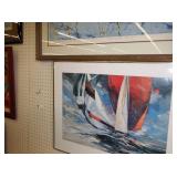 Artwork (7:30 PM): Original Louis Icart print w/ pencil signature, “Daybreak” framed print by Maxfield Parrish, “Secrets” print by Louis Icart w/ orig pencil signature, several Don Sparrow prints, framed Indian prints, Large framed oil on canvas of sailor and more!