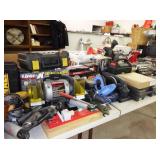 Tools/Riding Mower (4 PM): Craftsman 42” riding lawn mower, Craftsman snow blower, Turncrafter Commander 12” variable speed midi lathe with digital controls, Delta Commercial Shop air cleaner (like new) Delta Commercial Grade 1/2HP Band saw (like new), Delta Commercial grade 10” unisaw, Porter Cable scroll saw (never used), Delta Benchtop drill press (like new), Sears Craftsman dust collection system, Makita 12” planer, Bostitch 6 gallon pancake portable air compressor (like new), U.S. General Pro 5 drawer locking tool box (like new), Sears 5” jointer, Weedeater blower, Craftsman push mower, task force grinder, 4HP edger, Nice selection of clamp and bar clamps, Chicago electric sawzall, Craftsman shop vac, Chicago electric belt/disc sander, shop rollers, HD bench vise, LG Qty of drill bits, wrenches, sockets, drivers, 9” buffer polisher kit, several cordless drills, Thoir-X rechargeable spot light, Porter Cable bench grinder, folding ladder, router table, several palm sanders, large Qty of hand tools, International Farmall shop stool and more!