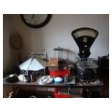 Curved glass oak china cabinet Camel-back sofa Drafting table Late 1800's sideboard with large glass knobs Ornate oak dining table Oak kitchen table Queen size bed Twin bed Antique walnut bed (full size) Antique dresser with mirror Stainless steel counter on large castors Signs Old ammo boxes Gun cabinet Antique trunks E-Z up folding canopy event tent Chrome shelves Bar stools Space heaters Tall chest of drawers Teak credenza Sofa Leather recliner File Cabinets Garden tools Patio furniture Old stoplight (working) Neon Budweiser sign Antique 1927 Toledo Honest Weight scale Old scales Air compressor Cookware Antique wood toolbox Large computer desk twin headboard & foot board Propane Propane torch Ceramic heater 2 Refrigerators Sand blaster Event tent McCoy clown cookie jar Roseville umbrella stand Primitive tools Coffee grinders Antique enamel ware Meissen blue onion Antique salt box Large cut glass vase Many other pieces of cut glass Silverplate trays, serving pieces Stainless steel cook ware Laurel Burch cats Waechtersbach mugs & bowls Costume jewelry File cabinets Drafting table Stainless steel table on large castors (would make a great kitchen island) Bar stools Oak coffee table Many storage bins