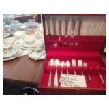 CHINA - CRYSTAL - SILVER · Brown Rose set of China dishes · Johnson Bros made in England Peach Blossom set of dishes · Limoges from France C. Ahrenfeldt set of dishes · Crystal glassware and bar ware · Silver Plated Oneida, 38 pcs. · Sterling Silver, International Sterling, Rose Ballet 51 pcs. · Solver Plate silver accessory pieces · McCoy Pottery Cookie Jars · Norman Rockwell Collector Plates · Accessory pieces