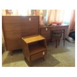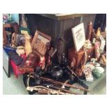 The owners traveled the world and collected many items from China, Europe, Kenya, India, Iran, Jerusalem, Siberia, Mexico, Tanzania, New Zealand and many more countries. FURNITURE · Large Grand Father Clock by Herschede - $15,000 new · Mid-century Modern light colored sofa · Matching chair · Comfy chair and ottoman · Simmons Sleeper sofa in bright color · Dining table with 6 chairs and extensions · Matching china hutch with glass doors · Beige love seat · Chair with matching table and table cloth · Lester, Betsy Ross Spinet piano · Triple dresser and mirror · Matching chest and night chest · 2 tall dressers · Matching headboard · Matching night chest