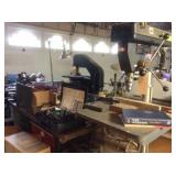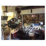 GARAGE · Craftsman 10” table saw and Joiner Planner · Black and Decker router · Skill reversing drive-R-Drill · Black and Decker 71/4 Circular saw · Craftsman 15” variable speed drill press · Craftsman Router Crafter Lathe · 12” variable speed band saw · Paint Sprayer · Wagner Power Steamer · Craftsman Portable Diagnostic Analyzer · Wen Wet wheel Model 2901 · Saw blades · Pipe clamps · Shop Vac · Tools Chests (several) · Weller soldering gun · Cool Shade (New) · Craftsman, 5 drawer tool bench with large wood top · Timing light · C-clamps in many sizes · Tool stool · Hammers · Screw drivers · Drill bits · Nuts and bolts · Nails · Saws · Wheel chair