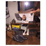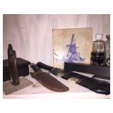 THIS IS THE FINAL SALE DAY!! Many items still available from the collection of notable Japanese artist Reiji Kimura. Folk Art paintings, hand drawings, wood works, rock collection and plenty of his collectible pieces. Depression glass, glass top-hats and boots, early industrial pieces, wood chairs, and volumes of old Japanese and American books. Some tools, lots of shelving and bookcases are also available. Prices listed are per item!!