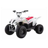 Razor 500 DLX Dirt Quad Bike. Big enough to tackle rugged off-road terrain, this pumped-up dirt quad is the perfect step up in size and adventure for older riders Powered by a 500 watt motor with high-torque internal/Integral gear set and self adjusting chain-driven Features twist-grip throttle control, rear disc brake, front brush bar, adjustable riser handlebars, rear suspension, and soft rubber grips 36V (three 12V) sealed lead acid Rechargeable battery with quick-change compartment and up to 60 minutes of continuous use Recommended for ages 14 and up; supports riders up to 220 pounds NEW IN FACTORY PACKAGING! Minor Box Damage. Retail Price $738.54 (19) |