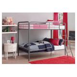 DHP Twin Over Twin, Metal Bunk Bed - Silver. Accommodates two twin mattress Front ladder attaches to the bed and is slanted for added safety Sleek silver metal finish Weight limit is 200lbs for top Weight limit is 225lbs for bottom In factory packaging. Packaging damaged. See at preview. Retail price $104.00 (17) |