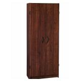 ClosetMaid 1308 Pantry Cabinet, Dark Cherry. Great for storing items in your kitchen, bathroom and even your laundry room Comes with 2 fixed and 2 adjustable shelves Measures 59.5 inches high by 24 inches wide by 12.5 inches deep Easy to assemble. Made with laminated wood. This product is CARB 93120 Compliant - Phase II In factory packaging. Packaging damaged. See at preview. Retail price $78.81 |