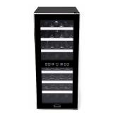 Whynter WC-241DS 24 Bottle Dual Zone Touch Control Wine Cooler, Black with Stainless Steel Trim. Vibration-free thermoelectric cooling, dual zones for different wine varietals Total capacity: 24 wine bottles, Upper Zone capacity- 12 bottles, Lower Zone capacity- 12 bottles Adjustable thermostat for both zones: Upper Zone 54ºF - 66ºF, Lower Zone 46ºF - 66ºF Internal fan-forced circulation for even temperature distribution throughout the cabinet Space saving design, 6 premium stainless steel trimmed scalloped shelves, 1 zone divider, recessed handle In factory box. GLASS IS BROKEN Retail price $271.37 |