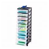 IRIS 10-Drawer Rolling Cart with Organizer Top Black, MC-3100-TOP Features ten shallow drawers to meet a variety of storage needs Rolling cart with an Organizing Top Tray Great for use in the home or office Unit Dimensions: 14.3 x 12.1 x 42.3 Inches In factory box. Retail:$63.88. |