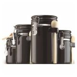 Anchor Hocking 03804BMR Canister Black Ceramic 4Pc Ceramic canister set home collection 4-piece color=black Wood Spoon. Clamp Top Lid. In retail box. Retail:$26.10. |