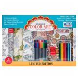 Wonders of Color Art Coloring Pack - Kit Includes 5 Beautiful Coloring Books, 24 Colored Pencils, 18 Double Ended Markers, a Pencil Sharpener, and 8 Delightful Notecards. 5 coloring books include Wonders of Mandalas Color Art for Everyone, Color Art Color and Create Nature, Wonders of Animals Color Art for Everyone, Color Art Color and Create Kaleidoscope and Wonders of Extreme Color Art for Everyone 24 heavily pigmented pre-sharpened colored pencils - PLUS - pencil sharpener 18 double-ended water-based markers Each coloring book has 24 one-sided designs that include geometric patterns, flowers, butterflies, bird, leaves, cats, iguanas, lions, birds, fish, birds, bears, mosaics, swirls and paisley designs 8 bonus notecards feature different designs: leaves, butterfly, flowers, kaleidoscopic design, peacock, mandala, floral and heart and floral and leaves NEW IN FACTORY PACKAGING! Retail price $26.95 |