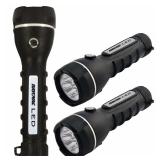 RAYOVAC BRSLED3PK-B Value Bright Robust LED Flashlight, 3-Pack Camping,Hiking,Travel. Durable, rubberized construction;Sure-grip body;Impact-resistant;Includes 2 D batteries & 4 AA batteries;Lifetime warranty;One 2D flashlight specifications:; 27 lumens; 5 LEDs;206ft beam distance; 50-hour run time on heavy-duty, 100-hour run time on alkaline ;Two 2 AA flashlight specifications:; 18 lumens;3 LEDs ; 82ft beam distance;10-hour run time on heavy-duty, 22-hour run time on alkaline; NEW IN FACTORY PACKAGING! Retail price $75.32 |