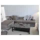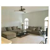 Jewelry, leather & fabric sofa, king bed set with Temperpedic bedding, 2 sectional sofas, 2 marble top coffee tables & one all wood coffee table, oriental rugs, dining set, floor lamps, end tables, modern dinette set, set of china, HDTV, TV modern stand, bookcases, lady's clothes and designer handbags, queen bed with Temperpedic bedding, desk, shearling coat, brass scale, Thos. Kincaide picture, office chair, futon, patio set, ping pong table, stainless refrigerator/freezer, Husky 8 drawer tool chest, Weber grill, linens & kitchenware SEE PICTURES NEXT