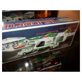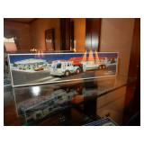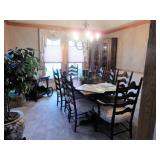 OPEN SUNDAY 10 AM TO 3:45 25 TO 50% OFF ALL REMAINING ITEMS. Living Room: Offers a matching Sofa and Love Seat, Drexel Lamp Tables with Matching Entertainment Table, Stunning Lighted 5 tier Glass Display Cabinet, Pair of Matching side Chairs, 3 Tables of Better Glasswares and knick knacks. HESS Trucks Mint on Box. Dining Room: Offers a Lovely Dining Table with 8 Ladder Back Upholstered Seat Chairs, Table has table cover pads and two leaves. A Matching Pair of Corner Display Storage Cabinets, Serving Cart, Faux Plant in Koi Style Pot with Stand. Family Room: Pair of Matching Leather Chairs with Ottoman, Chrome and Glass Lamp Table, Brass and Glass Entertainment Table, L-Shaped Sofa, Floor Lamp, Faux Plants, Pub Table with 4 Chairs, Modern Framed Art Work, Holiday Decor. UPPER LEVEL: Sexy and Fun 80's Platform Bedroom Suite included platform bed, a pair of lamp tables, armoire and dresser with mirror. Bassett 9 Drawer Dresser with Mirror, Scandinavian Furniture Desk with matching File Cabinet, Double Reclining Sofa, Lamps, desk mat, printer. Kitchen: Offers 3 Oak Bar/Counter Stools, Oak and Iron Bakers Rack, small amount of Kitchen items, Books. PATIO: Weber Grill, Patio Furnishings, Outdoor Tables. GARAGE: Offers, a nice variety of this and that, Golf Items and Exercise Items. Patio Firepit, Plus +++Tables and Mirrors, Exercise Equipment. This sale Starts April 1st.
