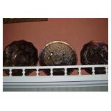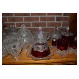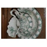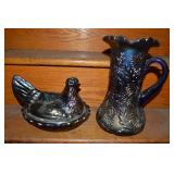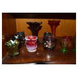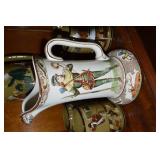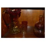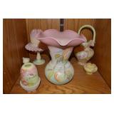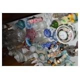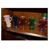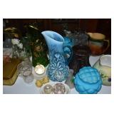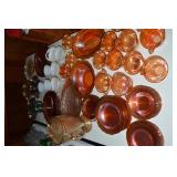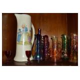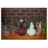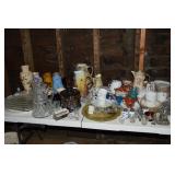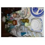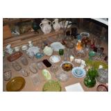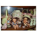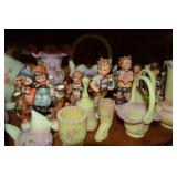 Unbelievable assortment of Glassware, Art pottery, and China: Collection of Hummels including Nativity Scene, Nun, many figurines Big Selection of Carnival Glass-lots of patterns, colors, etc. Lots of beautiful opalescent glass Huge variety of pressed and pattern glass Collection of Burmese Fenton Glass Pitcher and glass sets Fenton slipper collection Cruet collection Several pattern pitchers Ruby Flashed Glass Souvenir Glass Transfer Ware Hand painted china plates Lots of hand painted China Ironstone wash bowl set Pitcher and tankard set Oriental vases Jack in the pulpit vase Roseville Art Pottery