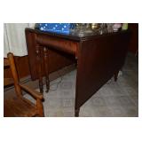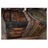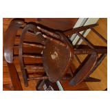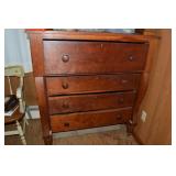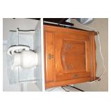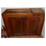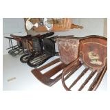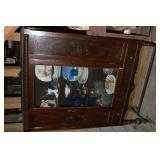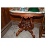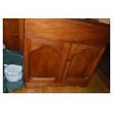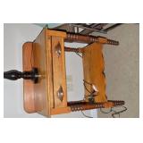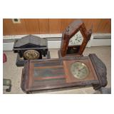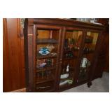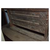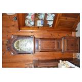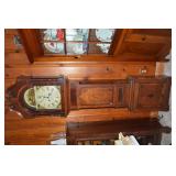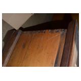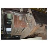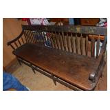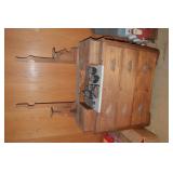 Nice Group of Antique Furniture: Quarter Sawn Oak book case Curved Glass China cabinet Nice old inlaid Grandfather clock Marble top Victorian parlour table Marble top Victorian wash stand Early Dry Sink Settle Bench with Stenciling Drop leaf gate leg table Marble top carved pull dresser Several early plank seat chairs Early one drawer stand Empire chest Dovetailed Blanket chest 5 section Oak stacked book case Brass bed Spool bed Depression era china cabinet Several pieces of antique furniture in the rough