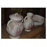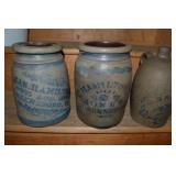 Decorated Stoneware and Other fine Antiques and Collectibles: Hamilton and Jones Crock Freehand Spittoon Ap Donaghoo stone jar James Hamilton Greensboro stencil Hamilton and Jones free hand Stenciled jug Hamilton and Jones stencil Small wax sealer with stenciling Bennington style pitcher Stoneware water jug Royal Child’s or salesman’s sample cast iron stove Miniature cast iron stove Collection of Brass oilers Sleigh bells Coffee Grinder Spool cabinet1 missing drawer Sad irons Black ball election box Hand carved dough bowl Quilts Antique prints in fancy frames Santa Collections-many styles Steiff Stuffed animals Hat pins Antique dolls Lots Victorian Style collectibles Lot of good children’s books with vibrant lithos Several wall clocks Trunks Brass top balance scale Apple peeler Cast iron coffee grinder Enterprise lard press Old car lamps Several rail road lamps Toms Peanut jar Planters peanut jar Horse hames Pitch pot Cream and milk cans Collection of old bottles Lionel train Town and country bicycle Mansfield tires advertising clock Costume jewelry Early Native American stone artifacts